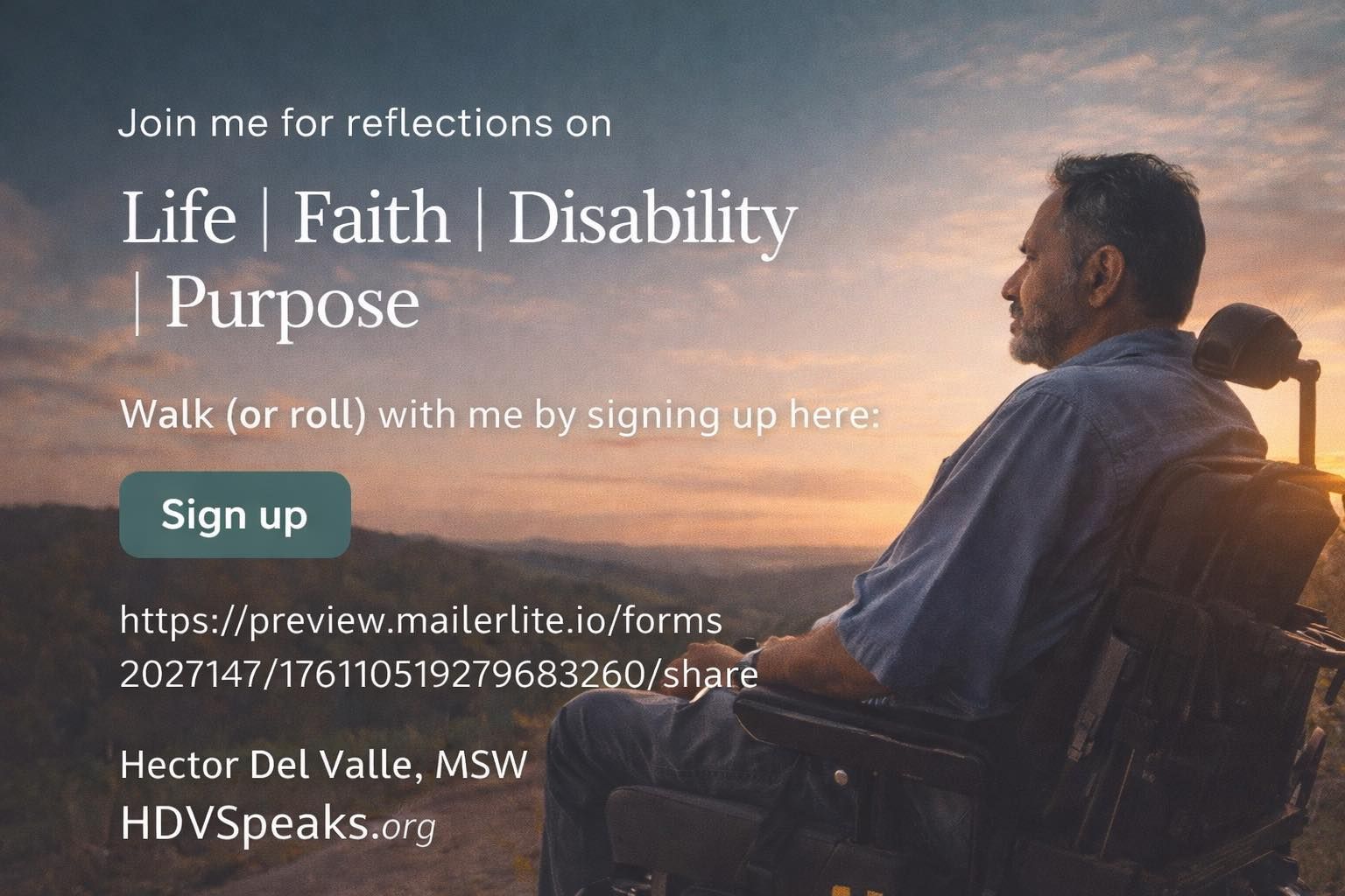 If you’d like to walk or roll with me, I’ll be sharing short reflections on life, faith, disability, and purpose—drawn from my own journey and the lessons I continue to learn along the way.